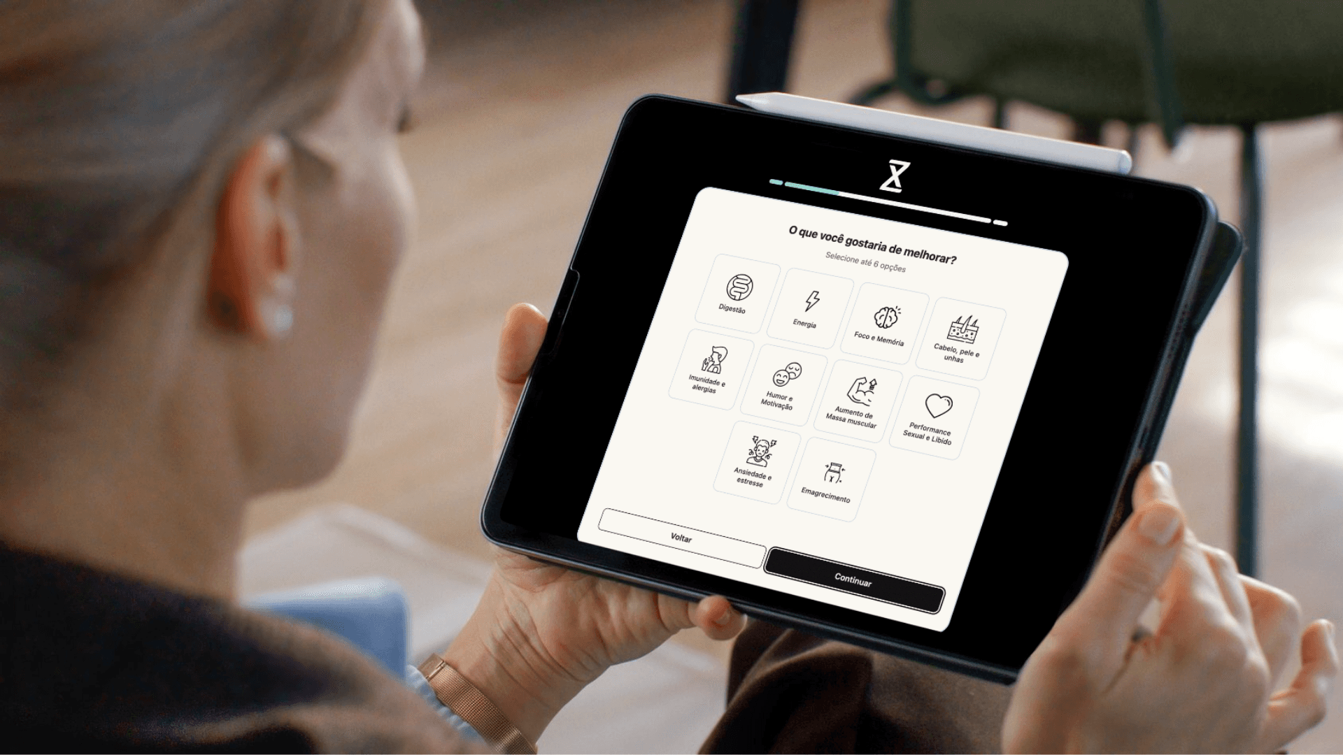 Em menos de 10 minutos, você nos conta sobre sua saúde, rotina, alimentação e objetivos. A Zenyx cuida do resto.