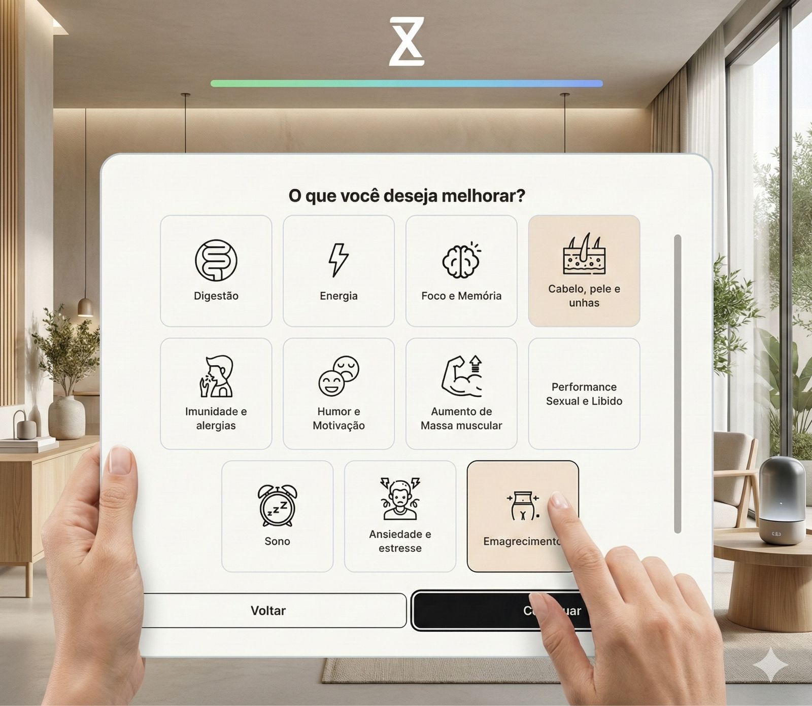 Em menos de 10 minutos, você responde perguntas sobre sua saúde, rotina, alimentação e objetivos — e a Zenyx cuida do resto.